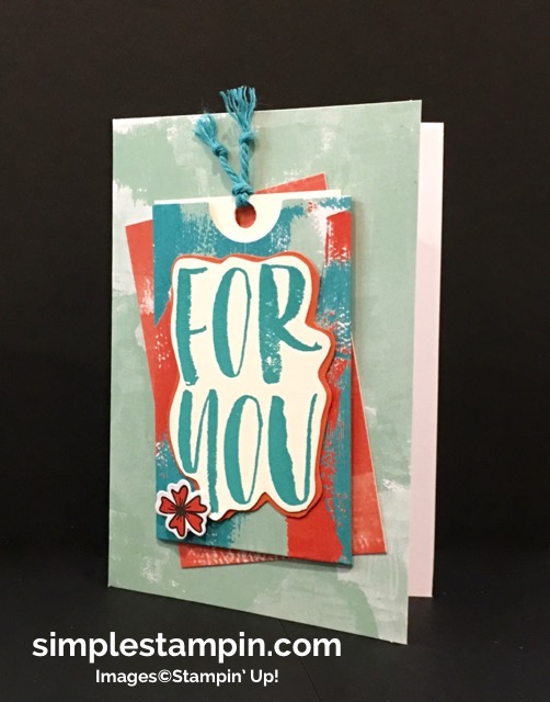 Next one…I did a combo on this one! The little “pocket” is perfect for a gift card…but I thought why not put a piece of paper and stamp on it multiple times and make it interactive with a “pull” with some bakers twine! I liked the layers and the colors of this and the “pull” makes it fun and I am sure that it will bring a smile!