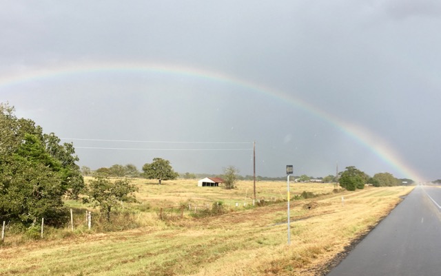 As I zoomed down the road about 5 minutes after leaving….I hit a BIG DOWN POUR…and then as soon as it came and left – I looked into my rear view mirror and saw this amazing rainbow. I knew that I had to pull over and take a picture as whenever I see a Rainbow I feel my Moms presence.