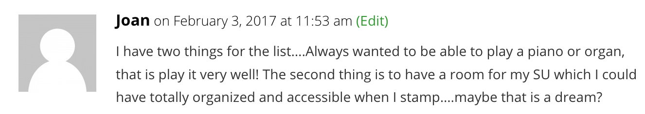 Congrats Joan! It was so much fun reading all the bucket lists. Great job Susan! Love the colors and the angle of this card. You nailed it. I agree….simple or complex….do what makes you happy because it comes from the heart. ??