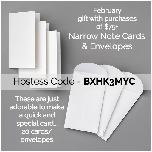 Now you can see why I am giving the Narrow Notecards & Envelopes as my gift with purchase this month! I will also tuck in several of these with the notecards……You can always find the current incentive on the drop down bar on the blog and the current Hostess Code is on the side of my blog.