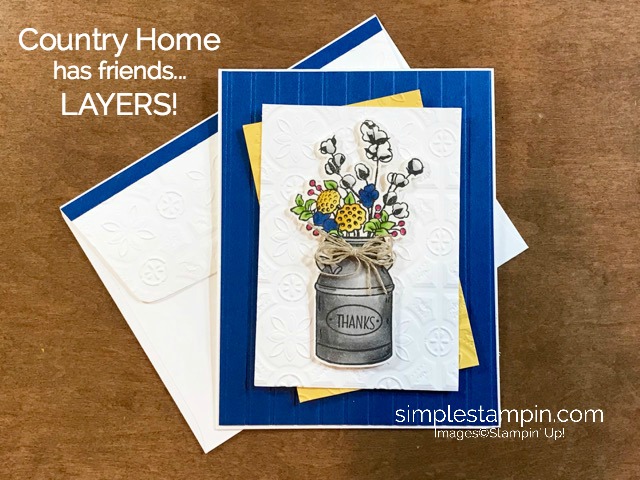 Good Morning and as promised I have another card for you featuring the Country Lane Photopolymer Stamp set….if you missed my other post with this, please click here for that inspiration. Today I have for you an example of just how adding layers of textures to make a fun, simple and classic card…. is easy to do with little effort!