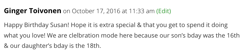 “When it is your Birthday….make is special, do something for you…find the “good in you”….just have fun!”